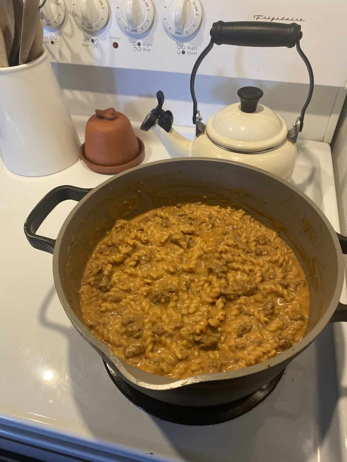 Made with heavy cream and real cheddar cheese, every bite features tender pasta and savory ground beef smothered in a rich and cheesy sauce. It’s the perfect family-approved weeknight dinner!
