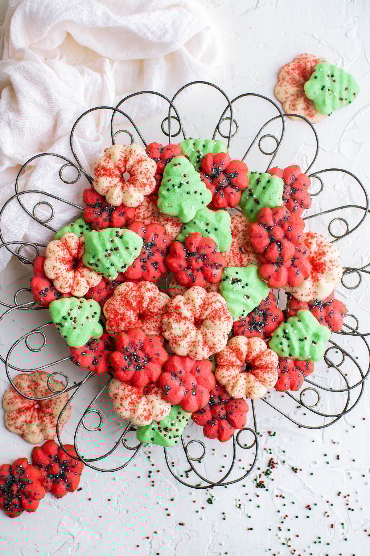 - They’re so colorful and festive! I can’t help but smile when I look at them. These spritz cookies will definitely help bring the holiday cheer.